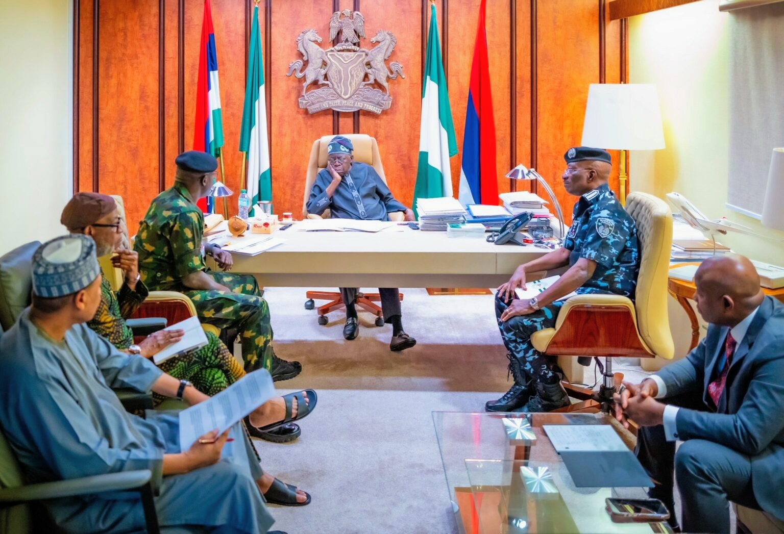 Sunday’s meeting was attended by the Chief of Army Staff, Lieutenant General Waidi Shaibu; the Chief of Air Staff, Air Marshal Sunday Kevin Aneke; the Inspector General of Police, IGP Kayode Adeolu Egbetokun; the Director General of Department of State Service (DSS), Tosin Adeola Ajayi.