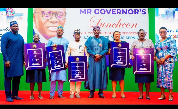 Governor Babajide Sanwo – Olu administration has rewarded a total of 177 outstanding public servants in Lagos State with five brand new cars and N165.5 million.